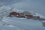 快晴でほとんど無風状態の燕山荘は、日帰りの登山者(2名)が帰ってからは静かなものだ。夕日を眺めながら散歩をしたり夜景を撮影するなど、今日の燕山荘は貸切の予定のはずが、真っ暗になってから単独の男性がやってきた。挨拶をしながら色々聞くと、先週の日曜日に三股の駐車場で写真を撮ってあげた人だった。翌日、快晴で気温の上昇により雪が腐って歩きにくくなる事を予想して冬季小屋を7時30分に出発。ときどき雪で真っ白になりながら中房温泉に10時に到着した。 |