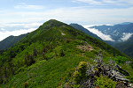 東沢岳、東餓鬼岳の展望は良かった。東餓鬼岳から先の稜線は、ほとんど展望が望めない状態だったけど、思ったほど薮が酷くなくて助かった。 |
