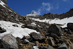 小雪渓を登りきった場所で山火事が発生したようで、枯れた高山植物が燃え尽きていた。