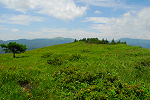 雨雲が出現し雷も鳴りだしたので急いで山頂へ向かうが、到着したとたんに大粒の雨が降り出し速攻で下山。麓までやってくると雨雲が消えて青空が広がっていた。