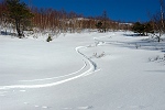 予定では、雪原に下ってから大草連へ戻ろうと思っていたけど、スキーが滑らずクロカン状態になるのが嫌だったので、トレースを辿って車へと戻った。 |