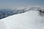 角間山から角間峠に戻り、湯の丸山経由で旧鹿沢スキー場へ滑り込む。まだまだ雪が少なくタラの芽のトゲトゲを避けながら滑るのは恐怖だった。 |