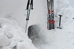焼岳に行こうと沢渡で待ち合わせをするが、雪がいっぱい降ってきたので焼岳を諦め乗鞍温泉スキー場でパウダーを頂くことにする。7時頃から雨へと変わり、20cmほど積った新雪に大量の雨が吸収されたので、ビシャビシャと音をさせながら生コンの中を滑っているようだった。 |