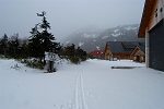 ペンションふくながでテレマークスキーとシールをレンタルして根子岳へ行こうと思っていたが、一寸先が見えないほど真っ白な状態となってしまい、峰の原スキー場から1歩も出れなかった。
