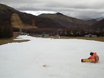 春みたいな陽気でベショベショになった雪は、ジャンプしながらターンするも全然滑らなくて面白くなかった。 |