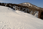 細工をしたシールをテストする為に関田峠経由で鍋倉山へ行こうとしたが、スノーモービルが爆音をまき散らしていたので、逃げるように反対方向へ歩いてみた。 |