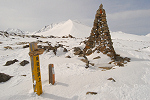 やっと根子岳らしい景色が見れると思い、早起きして奥ダボスにやってきた。しかし、山頂付近はホワイトアウト状態で、これから晴れるかどうか不安になってきた。 |