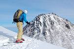 ある人から雪が降ったら面白い山だよと言われていたので、その日を狙って山頂から滑り降りたが、今期最強のモナカ雪に手こずってしまい、山頂直下しか楽しくなかった。 |