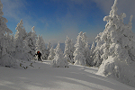 稜線付近の吹き溜まりには、前日から降ったと思われる雪が50cmほど積もみたいだけど、目まぐるしく変わる雪質だったので楽しく転ぶことができた。 |