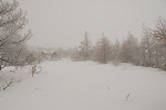 吹雪の中をラッセルして歩き続けたが、あまりにも条件が宜しくなかったので途中で引き返す。約40cmほど新雪があったけど、帰りもラッセルになってしまい、戻ったとたんに青空が見えてきた。 |