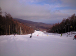 ちょっと重いけど、ゲレンデが広いので本日も楽しく滑る。やっとスキー場らしくなってきたので、明日の為に緩斜面でテレマークターンの練習をする。 |