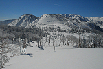 予想通り晴れてくれて素晴らしい景色を見る事ができた。新雪が1mほどあったけど、今年の鍋倉はとっても雪が多いような気がする。 |