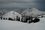 根子岳と四阿山の間にある広い斜面を滑ってみるもモナカ雪で楽しめなっかたので途中で引き返す。