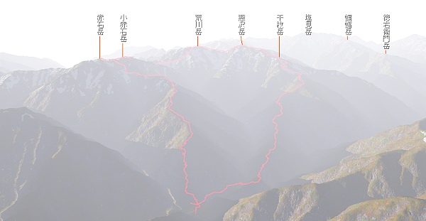 > 赤石岳 荒川三山 2004年8月10〜12日 晴れ