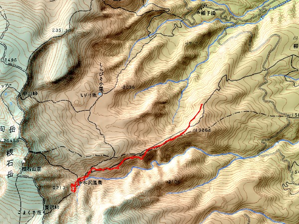 トップページ > カシミール3D山行記録 >  本沢温泉 2004年10月16〜17日 晴れ