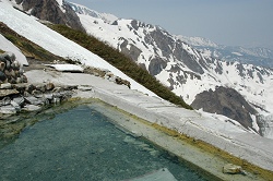 ちょっとゴミが多いけど、湯加減もバッチリで、とっても気持ちい。 冷たいビールを飲みながら数時間ほど滞在するが、すっかり日焼けをしてしまい肩がヒリヒリする。