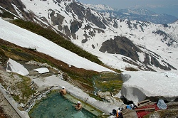 黙々と歩いてると石垣のある不思議な場所に到着した。 どうやら、ここが白馬鑓温泉らしい・・・