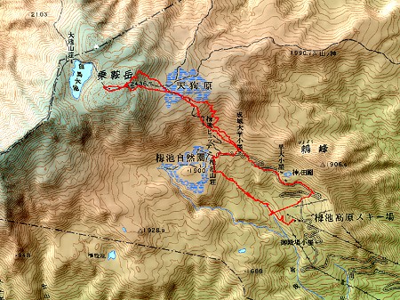 午前4時頃に栂池を出発した人達は、どこへ行ってしまったのだろうか? トレースも消えて、頂上に近づくにつれて硬い雪となり、とっても滑りにくそうだ。アイスバーンとなった場所で滑落しないよう大きく迂回しながら三角点のある場所へ到着した。