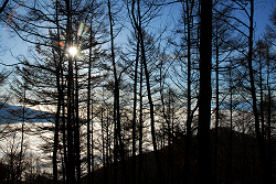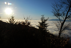 山頂周辺は間伐が行われたようで、以前よりはスッキリしている。しかし、それでも展望は悪い。もう少し北側の展望が良ければ四阿山や烏帽子岳の眺めも楽しめそうだが、目的の雲海も見れたので さっさと下山することにした。