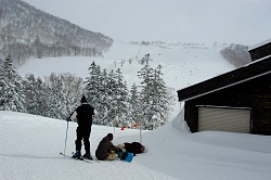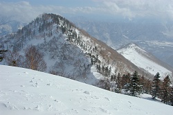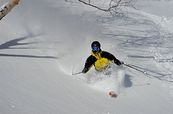 ゲレンデのパウダーを頂いてから林道へ移動する。今日の行程は短いけど、武田さんから大事な板を借りてるので傷を付けないように慎重に歩き出す。