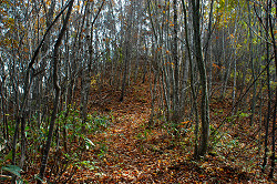 頂上まで僅かな距離だったけど、熊とか猟師がいるんじゃないかとドキドキする。しかし、紅葉も見頃を過ぎたようで藪の見通しも良い。
