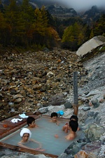 昨年は「大混雑してるので日帰りの客には断っている」と言われたが、まだ時間が早いせいか、今日の内湯は貸切である。誰も入っていないので、ちょっと熱めだったけど、窓から見える景色にのほほんとしながら、しばらく温泉を楽しんだ。