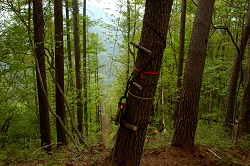 木をいたわるように硬い枝を使ってワイヤーを巻きつけてあったが、ハシゴも作ってあるので、これが営林署の職人技なんだろう。ジックリに観察して、いつの日か役立てたい。