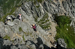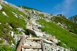 もう、伊那前岳の頂上はどうでもよくなり、宝剣山荘に戻って中岳に登ることにする。近くにロープウェイが無ければ最高に良い場所だと思うが、嫌ってほど人と擦れ違う。