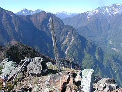 戸台駐車場(5:00)〜鋸岳分岐(6:56)〜大岩下の岩小屋(9:44-10:18)〜角兵衛コル(12:18-13:03)〜第一高点(13:26)〜小ギャップ(13:40-14:00)〜鹿窓(14:08)〜トラバース終了(14:48)〜大ギャップ(14:55)〜大ギャップ底(15:17)〜第二高点(15:42-16:13)〜中の川乗越(16:37)
