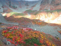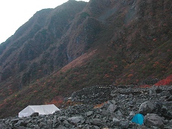 この日は涸沢小屋と涸沢ヒュッテに出かけるだけだった。