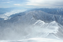 暗くなって外に出てみると、サンアルピナ鹿島槍スキー場の明かりが綺麗だった。大町や長野の夜景も綺麗で軽井沢方面も見える。風が無ければ最高だけど、雪が舞っているので早々にテントに戻って、窮屈なテントで寝ることにした。