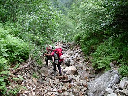 | 第1日目 中房温泉(4:36)〜合戦小屋(7:28)〜燕山荘(8:40)〜大天荘(12:37)〜大天井岳(13:02)〜大天井ヒュッテ(13:45)〜貧乏沢入口(14:09)〜天上沢(16:42)