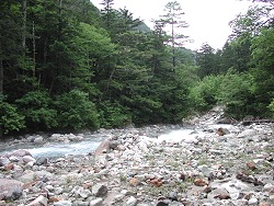 第3日目 槍岳山荘(6:35)〜槍沢ロッジ(9:07)〜横尾(10:17)〜徳沢(11:44)〜明神(12:54)〜上高地(13:50)