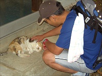 スタート前に猫と遊んで