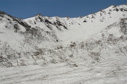 なるべくアクセスが良くて、適度に滑れる場所を探すと小日向山を思いつた。パウダーの時期に登ってみたいと思っていたが、いつのまにか春になってしまい、無名の温泉とセットで楽しむことにした。