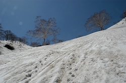 滑り出したらすぐにデコボコの斜面に突入。何とか転ばすに滑れたが、全然楽しくない。さっさと滑って猿倉に戻る。