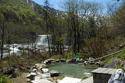 小日向温泉まで戻り、林道を歩いて無名の温泉に出かける。湯加減がバッチリで、とっても気持ちが良い。日焼けが気になるので早々に上がって、MTBで周辺の散策に出かけた。