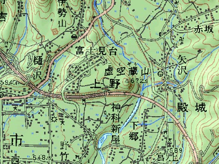 高速道路を建設した時に登山口の標識を作ったのだろうか?標識の先は藪に覆われ、登山道が存在してるか不明である。リンゴ畑から虚空蔵山に行く方法も考えたが、神社から先に登山道があるのか不明である。どうした良いのか考えてみたけど、何とかなるだろうと思って高速道路脇の細い道路に進んでみることにした。
