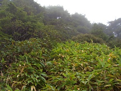 万座亭でのぼせるまでまで温泉に入り、フラフラになりながらロビーでコーヒーを頂く。パンフレットを読みながら万座温泉ガイドを見てたら、熊四郎山なる怪しげな場所があった。コンクリートで固められた遊歩道が山頂付近まで続いているようで、湯畑の散策ついでに登ってみる。