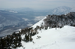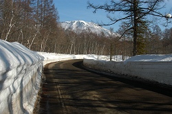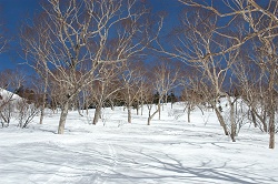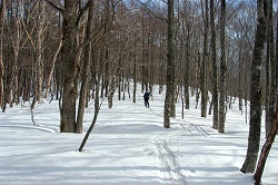 来た道を戻り、予定していた斜面を快適に滑るつもりが、板が滑らず急ブレーキが掛かりっぱなしだ。緩斜面ではヨロヨロりなりながら直滑降で下る。林道はクロカン状態だった。