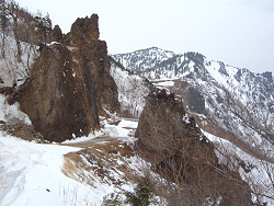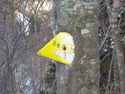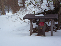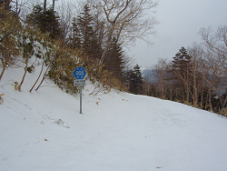 しばらくするとお地蔵さんが現れた。近くにはスキーツアー用の標識もあって昔から往来が盛んだったことが伺える。