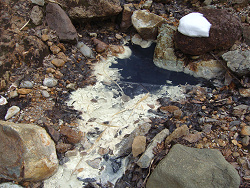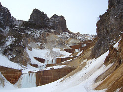 その昔、五色温泉には多くの宿があったらしいが、大正時代に山津波が発生して現在の宿だけになったようだ。五色温泉といえば、五色に変わる温泉が魅力的で、その中の黒い湯花が黒湯山と大きく関係してるらしい。