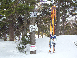山頂から横手山や白根山が見える。なかなか展望の良い山でチャンスがあればスキーで御飯岳方面にも行ってみたい。