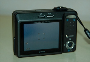キャノン、ソニー、コニカ、オリンパス、フジフィルムを1台ずつ起動させて、起動タイムやズームの操作性、画面の見やすさなどを比較した結果、フジフィルムは色が濃くて僕好みではないし、ソニーは操作性が悪い。キャノンはIXYが良く壊れると聞くので、オリンパスの生活防水のカメラを狙って交渉してみるも、思ったほど値引きができずエプソンになってしまった。