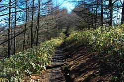 ふと視界が開けた場所に到着すると野辺山スキー場のリフトが見えてきた。大きなアンテナが真上を向いて宇宙の電波を観測しているけど、まだまだ高原野菜も健在である。 今年の夏は、冷夏でレタスの出荷も大変だったらしいけど、テレマークスキーで遊ぶので暖冬も困る。