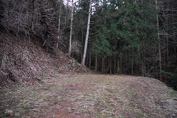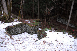しばらくすると、山の中にしては異様な石垣が現れる。関所?山城?堰堤?と色々考えてみたが、石組みの状態を見ると水とは関係してないようだ。