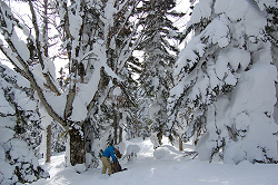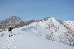 今日はシールも効いて快調に登れる。しかし、T2Xのソフトダンクを交換して銀色のタイプにしたので少しだけ歩きにくい。 前回の教訓をいかして重い雪の対策をしたつもりが、今日は雪が軽くて交換した意味は無かったようだ。