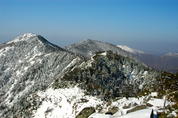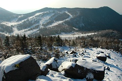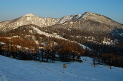 隣の篭の塔山には負けるけど、こちらも展望が良くて、逆光でなければ富士山も見えそうだ。標高2000m前後から雪に変わったようで、遠くに見える四阿山は、真冬のように感じる。
