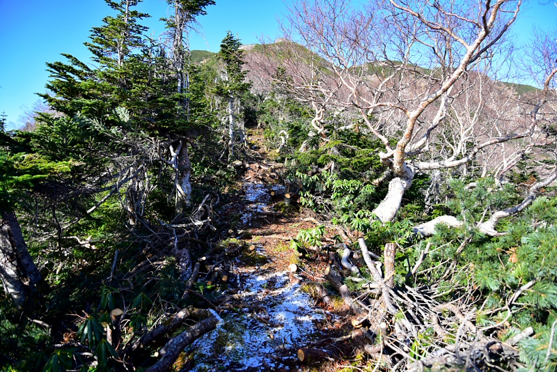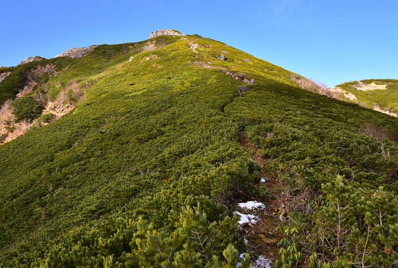 新しい登山道は、足元にハイマツがあるので注意して登ります。