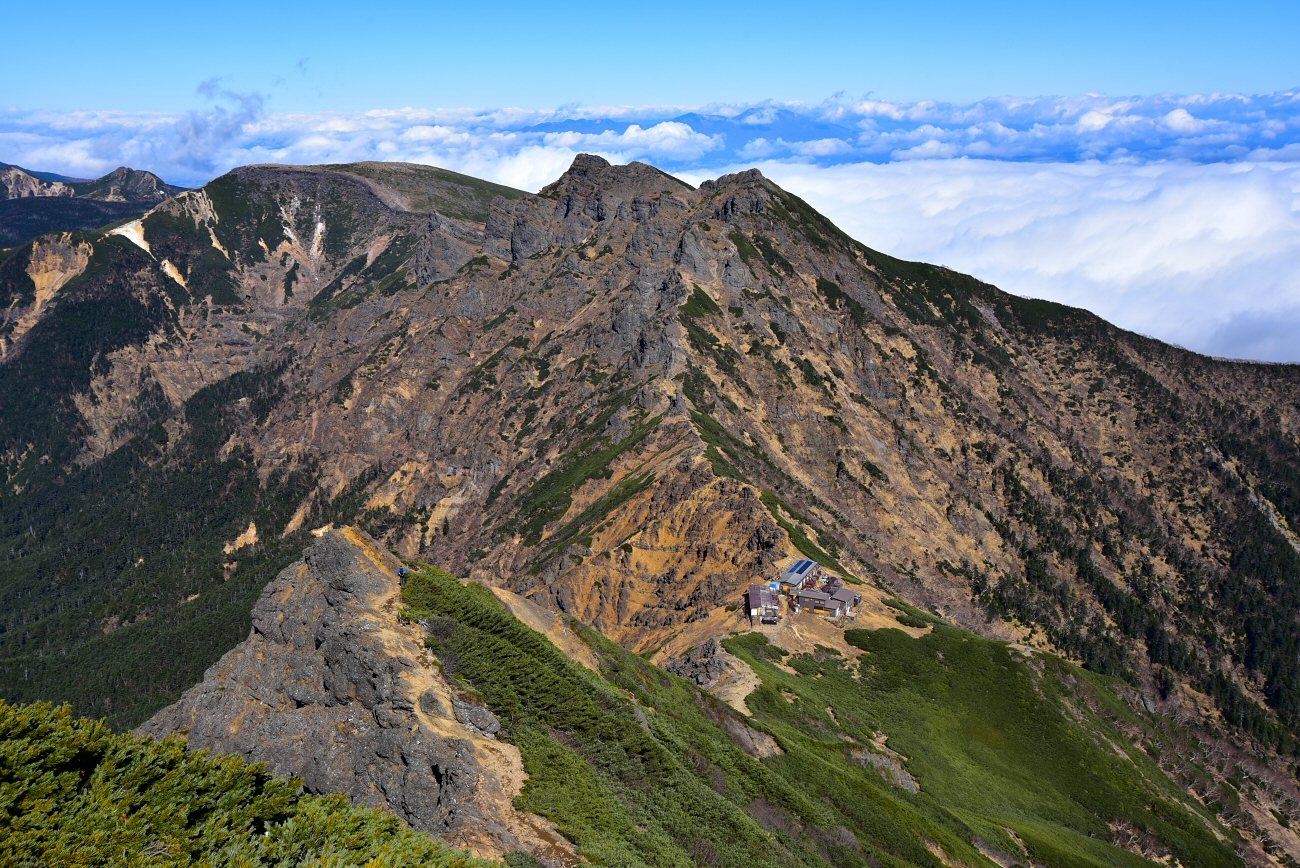 横岳方面です。帰りは、あそこまで登り返さないといけません。